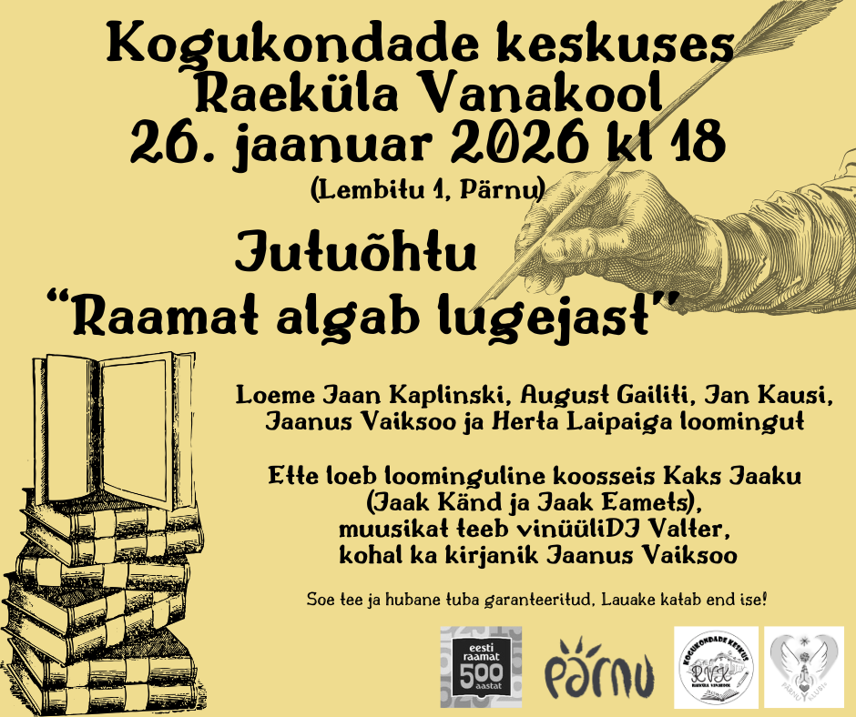 Vaata Raeküla Vanakooli kogukondade keskuse 2026. a sündmuste kava SELLELT LINGILT.