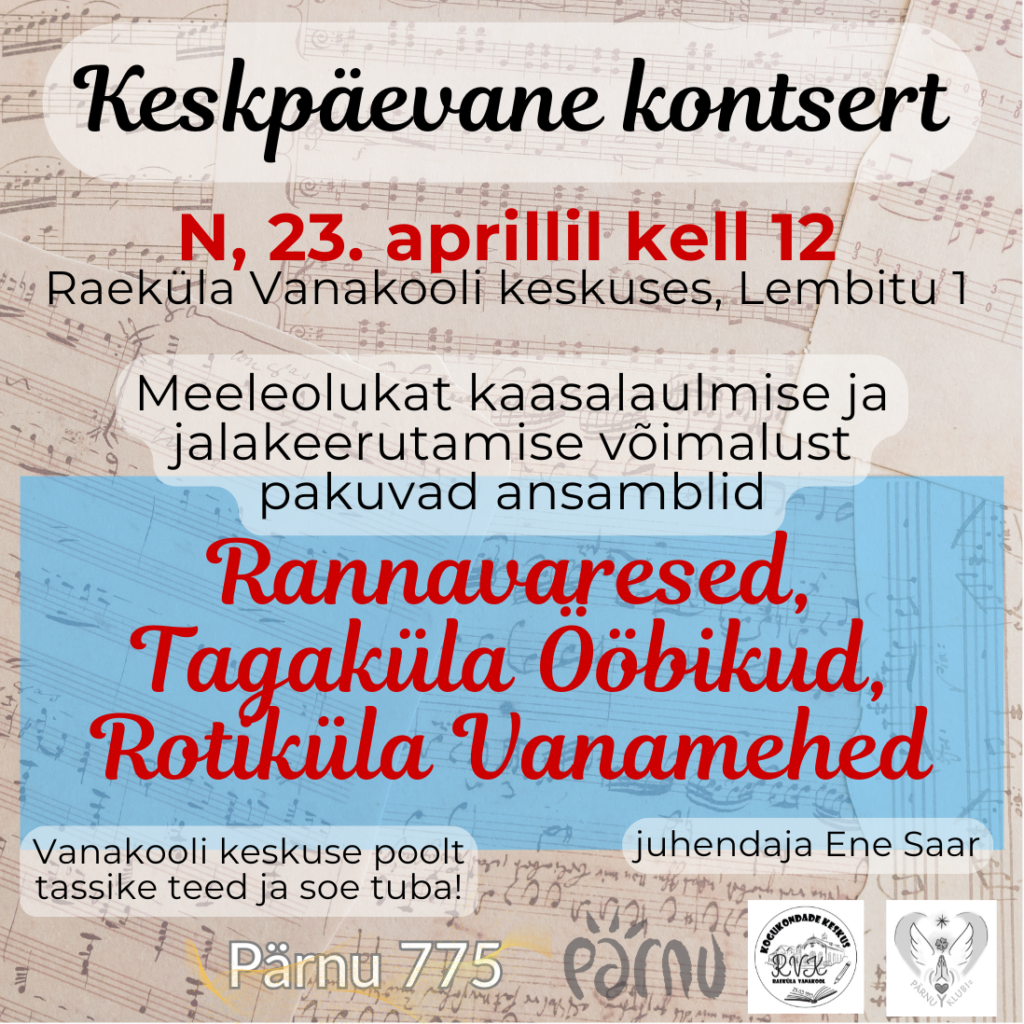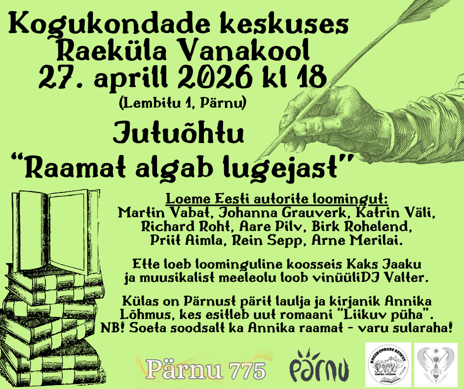 Vaata Raeküla Vanakooli kogukondade keskuse 2026. a sündmuste kava LINGILT.